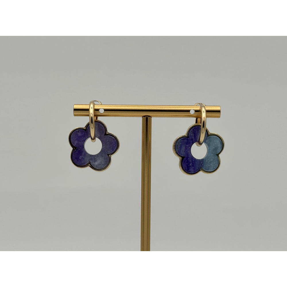 Bloem deluxe, net een tikkeltje luxer dan de Bloem oorbellen, en dit zit hem alleen in de gouden rand. Verder zijn beide modellen geschikt voor overdag of in de avond, een door de vele kleuren zit er altijd wel eentje voor jou bij!