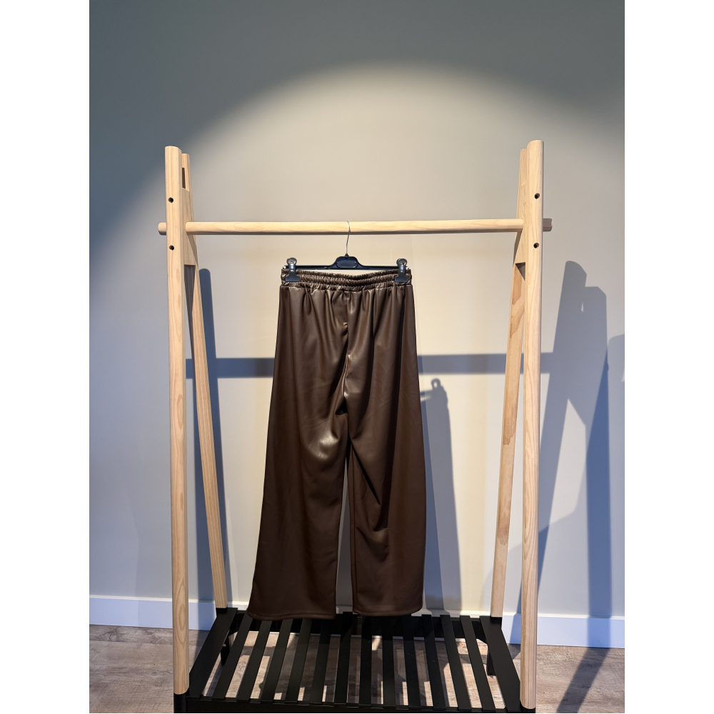Deze hippe leren broek zit heerlijk, voelt heerlijk zacht van binnen, Het is een wat korter model is tot op de enkel bij een lengte van 166. Verkrijgbaar in bruin en zwart One siza, draagbaar t/m 42